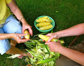 Fresh corn in an Amish market in OH today. Here is a picture of Nanny and me shucking it.